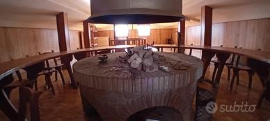 Il tavolo costruito con legno pregiato e pesante cosi come anche le sedie, gli angoli bar ai lati, realizzati con pietre, danno un tocco di rustico alla parte superiore.