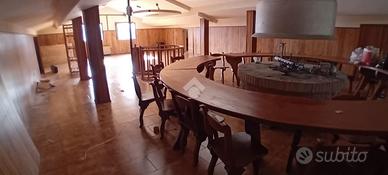 Lo stesso ingresso è impreziosito da una grande scala a chiocciola, in legno, che conduce alla parte superiore. La zona giorno si completa con una comoda cucina con camino, un angolo cottura con finestra. Due lunghi corridoi vanno a servire cinque camere da letto matrimoniali, ottimamente esposte, che affacciano sul giardino circostante.