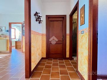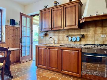 L'area esterna della proprietà offre un ambiente esclusivo e ben curato, caratterizzato da un ampio giardino di oltre 2000 mq, arricchito da uno stagno che ne esalta il valore estetico e la tranquillità. La casa, inoltre, è dotata di impianto fotovoltaico da 6 kW, che garantisce un'ottima efficienza energetica, riducendo i consumi. Climatizzata e provvista di un impianto di riscaldamento a biomassa con accumulatore da 2000 L, assicura un comfort abitativo ottimale in ogni stagione.