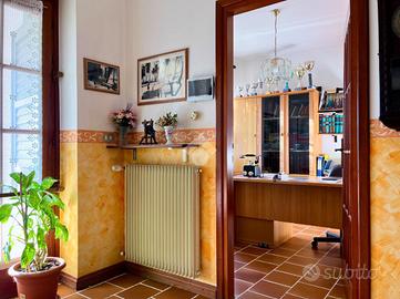 Al piano superiore, l'immobile offre un ampio soggiorno luminoso, una spaziosa sala da pranzo e una cucina ben attrezzata. Le tre camere da letto comprendono due matrimoniali, di cui una con un balcone che si affaccia sull'esterno e una singola. A completare il piano vi sono due bagni, uno dotato di vasca e l'altro di doccia, oltre a un pratico ripostiglio. Per chi ha bisogno di uno spazio dedicato al lavoro o allo studio, è presente anche uno studio separato.