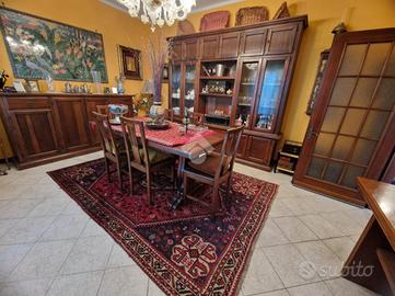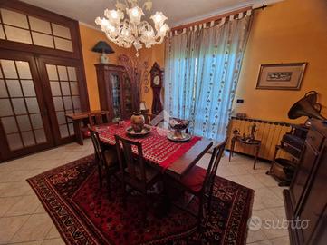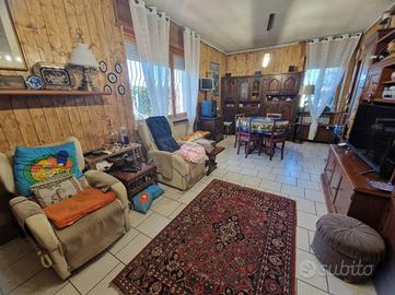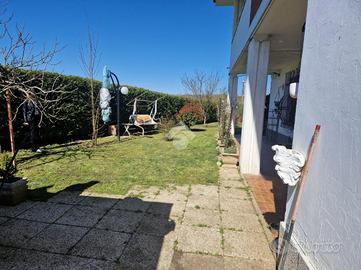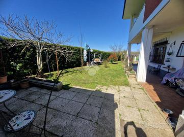 La villa degli anni 70 indipendente, è sita nel comune di Tigliole. Il cancello automatico si apre sul giardino di proprietà in parte rifinito con autobloccanti e in parte con prato all' inglese, piante e alberi. Dal portoncino si accede al disimpegno in cui si trova la scala di congiunzione dei due piani. Il piano terreno è composto da un luminoso salotto con cucinotta attrezzata separata. Il disimpegno trova al suo interno una camera da letto, il bagno con finestra e una seconda camera adibita a cabina armadi. Dalla scala in marmo si accede al primo piano. Dal portoncino si accede al disimpegno che divide tutti gli ambienti dell'abitazione. La cucina abitabile è direttamente collegata al terrazzo vivibile in cui si affacciano anche il salotto, il bagno e una camera da letto. Le camere matrimoniali sono entrambe di generose dimensioni e una è direttamente collegata al suo terrazzino privato con vista sulle colline. La terza camera, al momento usata come studio può essere ritrasformata in camera da letto. Il bagno del piano oltre ad una comoda vasca è dotato anche di box doccia. Completa la soluzione il box auto doppio. La villa è dotata di condizionatore e gli infissi sono in doppio vetro.