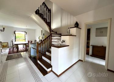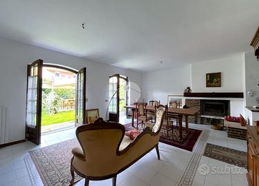 In zona residenziale, villa indipendente sita nel comune di Tollegno, in posizione tranquilla e comoda ai servizi, a pochi minuti dal centro di Biella. L'immobile è così composto: al piano terra troviamo ingresso, con vano scala che conduce a tutti i piani, ampia zona giorno composta da soggiorno e sala da pranzo, con uscita sul giardino, cucina, corridoio che conduce alla zona notte, formata da due camere da letto, una con balcone e una con acceso al giardino, un ripostiglio e un bagno con vasca. Al piano primo ampio disimpegno, tre camere da letto, un terrazzino, un bagno con vasca e due ripostigli. Il piano seminterrato è composto da ampia tavernetta, bagno con doccia, due cantine, centrale termica e box auto doppio. Il riscaldamento è autonomo con caldaia a metano a radiatori. Inoltre, è presente un camino a legna al piano terra. Gli infissi sono in legno con vetri doppi. A completare la proprietà un giardino che circonda l'abitazione, di circa 400 mq.