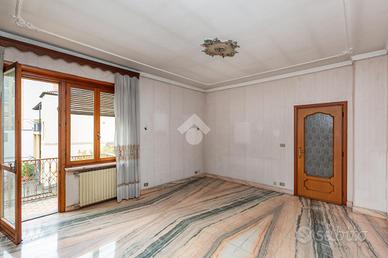 VIA COGNE - Casa indipendente libera su quattro lati, costruita negli anni '70 e dotata di un'ottima esposizione al sole. L'accesso è sia pedonale che con passo carraio che permette anche di parcheggiare comodamente la macchina. Il cortile, al momento piastrellato, è ampio e permette di godere di una buona privacy. Internamente è costituita da un piano rialzato in cui è presente una stanza dotata di camino, mentre una bella scala in granito ci conduce al primo piano. Al primo piano si trova un ingresso, un ampio salone, due camere da letto, collegate tra loro da un lungo balcone. Il salone affaccia sul lato sud della casa ed ha un l'accesso ad un balcone. La cucina è spaziosa ed ha l'accesso ad un ampio terrazzo ci circa 30 mq che da sul retro della casa. Inoltre sono presenti due bagni finestrati, di cui uno con vasca e l'altro con doccia. La disposizione interna favorisce una buona luminosità naturale, creando un'atmosfera piacevole in ogni ambiente. E' presente un sottotetto grezzo e non collegato ma che potrebbe essere utilizzato per ampliare la metratura abitativa. Al piano interrato, già rifinito, sono presenti sei vani accatastati ad uso magazzino la cui metratura totale è di circa 220 mq. Libera subito. La posizione della villa garantisce un facile accesso ai servizi essenziali e alle principali vie di comunicazione, rendendola una scelta pratica per chi desidera vivere in una zona ben collegata. La proprietà rappresenta un'opportunità interessante per chi cerca una casa in una zona tranquilla ma ben servita, con il vantaggio di poter personalizzare gli spazi secondo il proprio gusto.