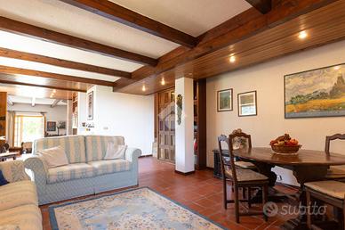In un angolo riservato della valle, dove il panorama e la quiete si fondono con l'armonia del paesaggio, sorge questa villa indipendente sui quattro lati, a quota 650 metri sul livello del mare. Situata sul versante più soleggiato, a soli 600 metri dalla strada provinciale ma già sufficientemente in alto da regalare una sorprendente sensazione di pace, la villa è stata costruita a metà degli anni '80 e si presenta oggi in buone condizioni generali, grazie alla costante cura dei proprietari che l'hanno sempre utilizzata come casa di villeggiatura.