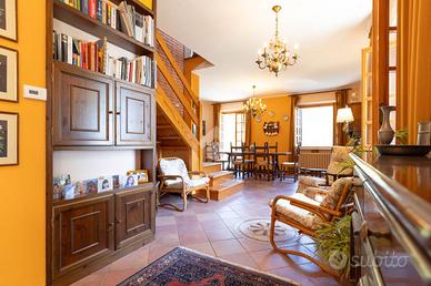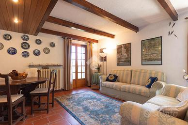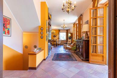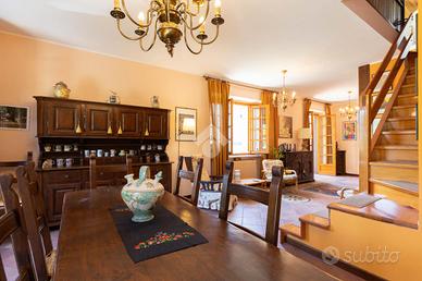 Circondata da circa 800 mq di giardino curato e fiorito, gode di vista ampia e profonda regalando scorci spettacolari sul paese e sulla vallata.