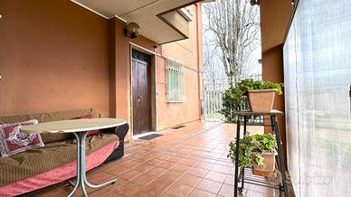 Tra il cancello d'ingresso e l'abitazione si estende il giardino privato, attraversato da un vialetto in autobloccanti che permette di raggiungere l'immobile e il garage con la macchina.