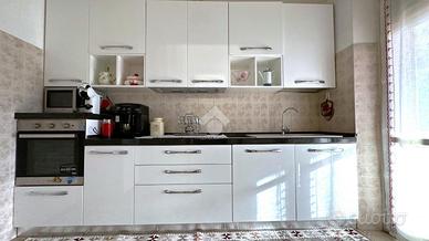 Tramite il secondo ingresso si accede a un secondo trilocale, con una cucina abitabile, un soggiorno, una camera matrimoniale e un ulteriore bagno con doccia.