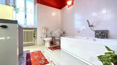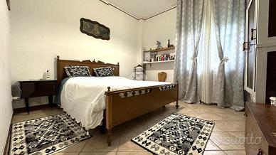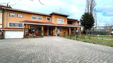In posizione tranquilla e silenziosa, nei pressi della piscina di Tortona, la proprietà si suddivide in un'abitazione di ampia metratura con un adiacente locale attualmente adibito a magazzino di oltre duecento metri quadrati. La parte principale dell'immobile si sviluppa al primo piano dell'immobile, dove la scala conduce all'ampio salone triplo e luminoso. Nella vasta metratura di questa stanza sono stati realizzati un angolo adibito ad ospitare una tavolata anche numerosa, un'area giorno inondata di luce dalle finestre posizionate sulle due pareti adiacenti, e un terzo spazio che conduce alla cucina, moderna e dotata di accesso a un'ampio terrazzo con vista sul giardino. La zona notte si compomne di due camere da letto di metratura molto abbondante, e di un bagno con finestra e vasca idromassaggio, caratterizzato da forme e colori moderni e particolari. Il piano terra dell'immobile era originariamente distinto in due divere unità abitative, ora congiunte, che conservano tuttavia i due distinti ingressi. Dallo stesso ingresso che conduce poi al piano superiore si sviluppano al piano terra tre stanze, attualmente utilizzate come camere da letto e una stanza armadio. Sono inoltre presenti un ripostiglio molto ampio e un bagno con doccia. Tramite il secondo ingresso si accede a un secondo trilocale, con una cucina abitabile, un soggiorno, una camera matrimoniale e un ulteriore bagno con doccia. Adiacente alla casa si sviluppa invece su due livelli più un piano ammezzato un ampio magazzino estremamente capiente, attualmente allo stato pressochè grezzo, ma che potrebbe essere rifinito in un secondo momento. Sotto al magazzino si sviluppa un profondo garage. Tra il cancello d'ingresso e l'abitazione si estende il giardino privato, attraversato da un vialetto in autobloccanti che permette di raggiungere l'immobile e il garage con la macchina.