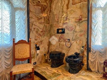 La zona notte offre camere con pavimentazione in parquet, accoglienti e confortevoli, mentre il bagno padronale rappresenta un elemento distintivo grazie a pavimenti e rivestimenti in onice, scelta di grande impatto estetico e pregio.