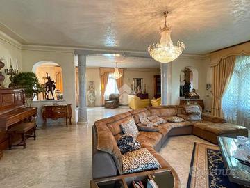 La proprietà si distingue per l'elevata qualità costruttiva e per l'accurata scelta dei materiali. L'ingresso è valorizzato da un ampio porticato in travertino che conduce ad ambienti interni spaziosi e luminosi. La zona giorno è impreziosita da camini con fuochi in marmo di Carrara, autentici elementi architettonici che conferiscono calore e prestigio agli spazi. Salone, cucina e scale sono rifiniti in granito, materiale solido ed elegante che dona continuità e raffinatezza all'abitazione.