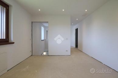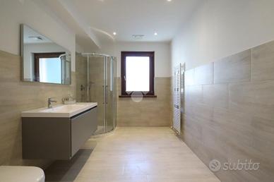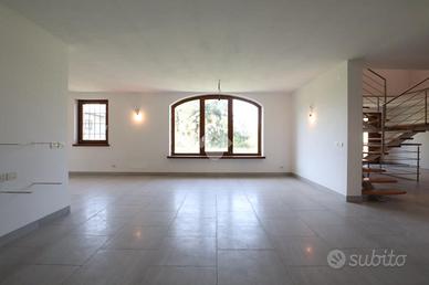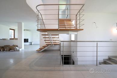 Piano Terra: La zona giorno è composta da un luminoso doppio soggiorno con camino a legna, perfetto per creare un'atmosfera accogliente e sofisticata. La cucina abitabile, dotata di ampie finestre, permette l'accesso a un portico esterno, ideale per cene e momenti di relax all'aria aperta. Completa il piano un bagno di servizio e una comoda zona lavanderia.