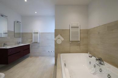 Primo Piano: Una moderna scala conduce alla zona notte, composta dalla camera padronale, dotata di una spaziosa cabina armadio e di una terrazza privata di 40mq. Sono presenti inoltre una seconda camera, due bagni uno dei quali con doppio box doccia, vasca idromassaggio e sauna, e una seconda terrazza.