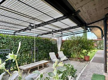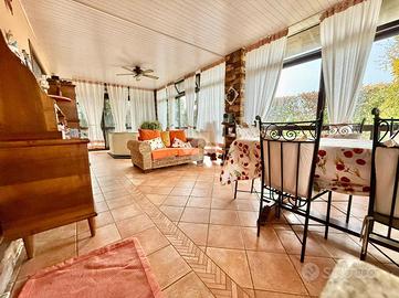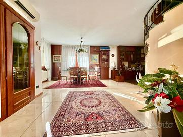 ULTERIORI INFORMAZIONI: Riscaldamento autonomo con caldaia a condensazione del 2023, pannelli fotovoltaici 4,5 Kw, impianto di climatizzazione, impianto d'allarme perimetrale e volumetrico, inferriate di sicurezza, impianto d'irrigazione automatico e anti zanzara (nebulizzatore) in giardino, boiserie in noce in camera da letto matrimoniale e in soggiorno, serramenti in legno con doppi vetri fonoassorbenti, impianto di aspirazione centralizzata a parete, linea vita sul tetto a norma di legge, videocitofono, cancello carrale elettrico.