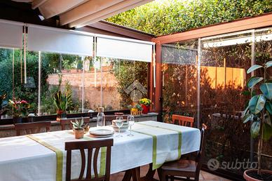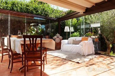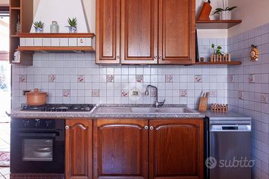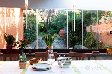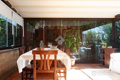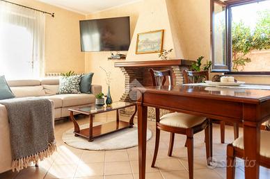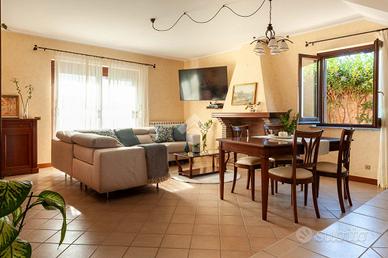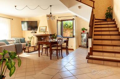 Al piano terra si viene accolti da un luminoso salone con camino, cuore conviviale della casa. Sullo stesso livello si trovano una comoda camera da letto, un bagno finestrato con doccia e una cucina abitabile, che si apre direttamente sulla serra bioclimatica, uno spazio luminoso e accogliente, ideale per godere della luce naturale in ogni stagione.
