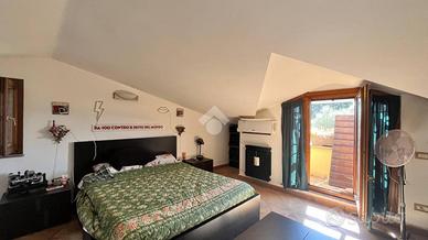 Al piano terra si apre un ampio salone con camino, una comoda cucina abitabile ,un bagno finestrato completo di doccia e vasca e due camere da letto. Al piano superiore, la zona notte prosegue con altre due camere mansardate, entrambe con accesso al balcone, e un ulteriore bagno a servizio del piano.