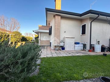 Treviso, località San Giuseppe, proponiamo in vendita villa singola con giardino privato di circa 800 mq, situata in un contesto residenziale tranquillo e comodo ai principali servizi. L'abitazione, costruita a metà degli anni '90, è disposta su livelli sfalsati e offre spazi interni ampi e funzionali. L'ingresso conduce alla zona giorno composta da cucina abitabile e bagno finestrato con doccia, soggiorno con camino a legna e accesso diretto al portico esterno. Al piano rialzato la zona notte comprende una camera matrimoniale, una camera singola e un bagno completo con vasca. Al piano superiore sono presenti una camera doppia con terrazzo abitabile e un'ulteriore stanza mansardata non abitabile, utilizzabile come locale di appoggio. La proprietà include anche un piano interrato ad uso magazzino/taverna dotata di cucina e stufa economica e il garage. L'immobile è dotato di infissi in legno con vetrocamera, pavimenti in gres porcellanato in tutti gli ambienti, caldaia a condensazione installata nel 2023 e predisposizione per termostufa. È presente l'allaccio del gas tramite bombolone GPL, con possibilità di collegamento al metano. La fibra ottica arriva fino al confine della proprietà. All'esterno si trovano due tettoie utilizzate per posto auto e camper e ulteriori spazi da utilizzare secondo necessità. La casa è realizzata con muri portanti dotati di isolamento a intercapedine, mentre la copertura del tetto è costituita da un pannello isolante posato tra due guaine protettive. Possibilità di acquistare un terreno agricolo di circa 3.300 mq, adiacente alla casa.