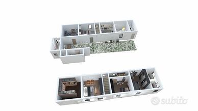 In fase di ristrutturazione è possibile realizzare due unità abbinate oppure due appartamenti indipendenti con scoperto privato.