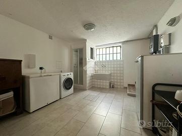 Si accede all'immobile dalla scala esterna che conduce all'ingresso, collegato con cucina abitabile, disimpegno, bagno finestrato con box doccia e due camere matrimoniali. La scala interna collega alla taverna al piano seminterrato, che si compone di un unico ambiente diviso in zona lavanderia e soggiorno/area hobby, con possibilità di accesso anche dall'esterno.