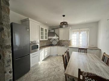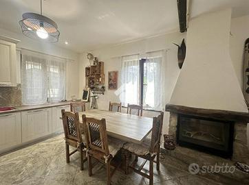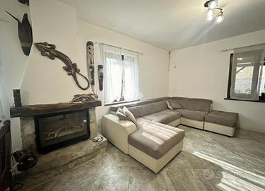 Il piano terra si compone di soggiorno con cucina a vista e con camino, due camere matrimoniali, di cui una dotata di bagno padronale con vasca, ed un secondo bagno finestrato con box doccia. Collegato internamente, al primo piano si trova un appartamento di tre locali attualmente da ristrutturare, che offre l'opportunità di creare una seconda unità abitativa o di ampliare gli spazi della dimora principale.
