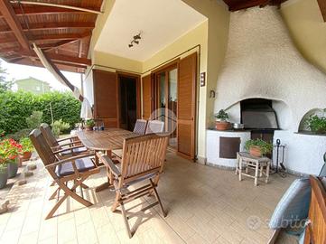 Triuggio inserita nel Parco della Valle Lambro, in posizione, privilegiata per la vicinanza ai servizi e al contempo riservata proponiamo particolare villa edificata su un lotto di 900mq. L' unità abitativa di 270 mq è disposta su 3 livelli oltre 2 box doppi , ad oggi unificata ma volendo facilmente ridivisibile in due appartamenti. La zona giorno, al piano terra è unica per la sua generosa metratura e per la particolare ariosità e luminosità degli ambienti. Una particolare menzione va riservata al giardino che circonda la villa, è sfruttabile in ogni sua parte con porticati funzionali e un'area verde molto ampia che però garantisce la tutela della privacy. La zona giorno è composta da un'ampia cucina abitabile, un salotto doppio con area camino e pranzo oltre un bagno al piano e una cameretta/ studio. Al piano primo delle due diverse aree troviamo due ampi locali con un balcone, una camera padronale con spazio per cabina armadio e bagno privato e cameretta adiacente. Il piano mansardato è diviso in due ambienti molto spaziosi e funzionali oltre bagno. Gli infissi sono tutti con doppio vetro, l'esposizione dell'immobile permette di godere del sole e della luminosità tutta la giornata e nel giardino è collocato un particolare e funzionale camino/forno/ griglia utilizzabile.