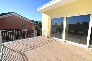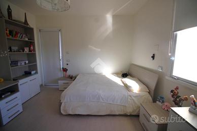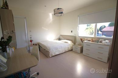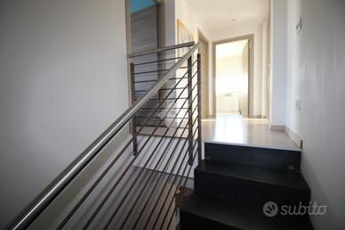 La scala conduce alla zona notte, composta da tre camere da letto. La matrimoniale dispone di cabina armadio e di un terrazzo privato di circa 20 mq, mentre le altre due camere condividono un balcone comune. Sullo stesso livello è presente un bagno finestrato con box doccia.