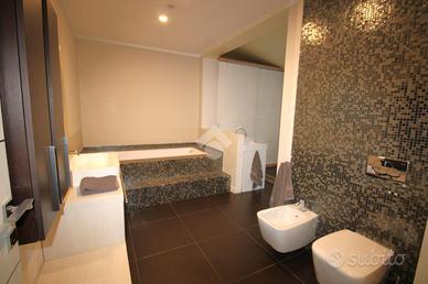 Completano il piano una sala da bagno con vasca idromassaggio, un angolo lavanderia e uno studio, perfetto per chi lavora da casa.