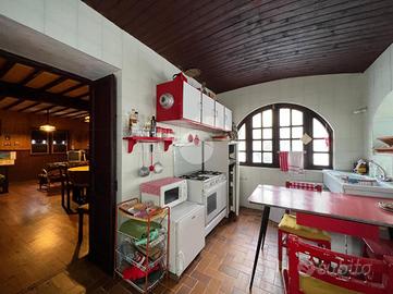 L'ingresso su ampio disimpegno, collega la scala interna con il soggiorno, il quale è ampio e luminoso grazie alle numerose finestre. Il piano terreno viene completato dal cucinotto anch'esso finestrato, ed uno studio.