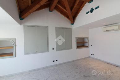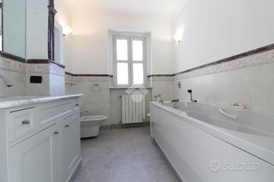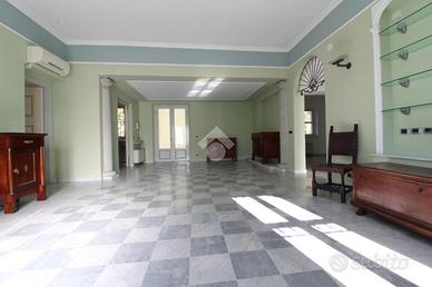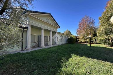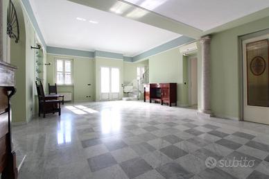 Vaiano Cr. - Prestigiosa villa singola in stile liberty con giardino e parco piantumato di proprietà di 3000 mq. Disposta su unico livello abitativo oltre a piano mansardato con terza camera, bagno e locale hobbies/studio. Terrazzo di 60 mq. Box con tre basculanti sezionali motorizzate. Finiture in marmo e pietra. Zona periferica del paese molto riservata.