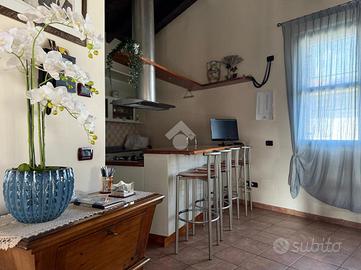 Soluzione di quattro locali e doppi servizi disposta su unico livello al piano primo, con portico di 16 mq.