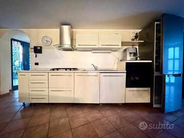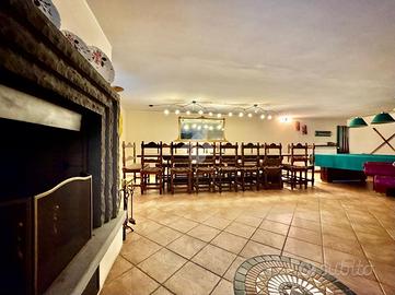 Al piano terra taverna di 100 mq rifinita con materiali contemporanei e di qualità, con spazio giochi e zona leaving con cucina adatta ad un ampio nucleo familiare.