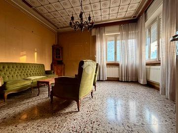 L'abitazione si sviluppa al piano primo con accesso da scala esterna oltre che da un piccolo ascensore/montacarichi che collega il piano terra, dove troviamo una zona accessori con cucina, ripostiglio salotto con camino e bagno lavanderia.