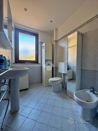 Al piano superiore, impreziosito dal tetto in legno a vista, si sviluppa una camera matrimoniale di generose dimensioni, estremamente luminosa e facilmente divisibile in due ambienti distinti. Il bagno della zona notte è dotato di una splendida vasca idromassaggio che trasforma lo spazio in un vero angolo benessere privato.
