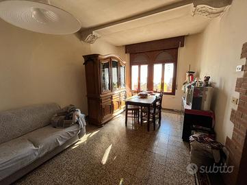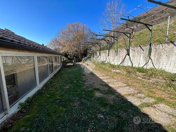 - il primo fabbircato, sviluppato su due livelli, al piano terra presenta una cucina, un soggiorno, un bagno,un ripostiglio e la centrale termica. Salendo nella zona notte troviamo tre camere da letto di cui una con uscita sul terrazzo panoramico.