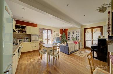 A soli 4,4 km dal cuore di Giaveno, splendida villa indipendente di recente costruzione si presenta come un'opzione ideale per chi cerca un connubio tra comfort moderno e tranquillità. Circondata da un ampio giardino privato di circa 700 mq, offre anche una piccola porzione di terreno di circa 100 mq a pochi passi dalla proprietà, perfetta per chi desidera un contatto diretto con la natura. La villa è disposta su tre livelli. Al piano terra, l'ingresso si apre su un disimpegno che conduce a un'ampia zona giorno, arricchita da un angolo cottura. Qui, gli spazi sono pensati per favorire la convivialità, con uscita sia sul balcone che su un ampio terrazzo completamente coperto, ideale per pranzi o cene all'aperto in qualsiasi stagione. Questo piano include anche una camera da letto matrimoniale, una camera da letto singola, un bagno e una comoda lavanderia. La pavimentazione in parquet conferisce un tocco di eleganza e calore all'ambiente. Salendo tramite una scala interna in legno, si accede al piano mansardato, attualmente da rifinire, composto da un disimpegno, due camere da letto e un ulteriore bagno. Questo spazio rappresenta un'ottima opportunità di personalizzazione secondo le proprie esigenze e gusti. Il piano seminterrato ospita una tavernetta accogliente, un locale tecnico e un box auto doppio con basculante motorizzato, offrendo così praticità e sicurezza. Non va dimenticato l'impianto di riscaldamento, che include una caldaia a legna, una a pellet e una a GPL; tutte le caldaie sono collegate a un impianto di riscaldamento suddiviso per piano e a un accumulo dell'acqua sanitaria da 600 L, garantendo così efficienza e comfort in ogni stagione. Inoltre, gli infissi in legno con doppio vetro assicurano un buon isolamento termico e acustico. La rampa scaldata bi-zona, sia carraia che pedonale, rappresenta una soluzione intelligente per prevenire problemi durante gelate o nevicate. Infine, per chi è attento alla sostenibilità, è prevista la possibilità di inst...