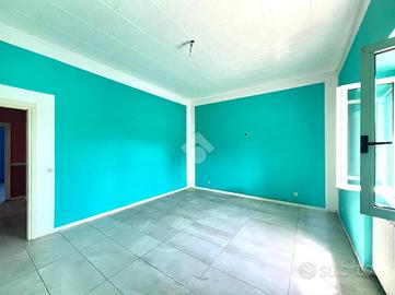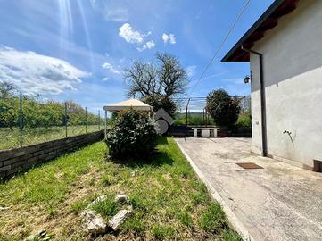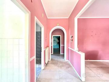 Il primo ambiente di 110mq con portico, ampio salone, cucina abitabile, disimpegno, grande bagno, due camere da letto e altra stanza che ci può collegare al secondo ambiente di 55mq in stato grezzo dove poter ricavare altre due stanze e un altro bagno. Al piano seminterrato troviamo un box/cantina grande come la superficie di casa, la corte in totale è di 550mq. Tetto e facciata ristrutturati da poco.