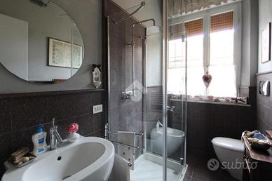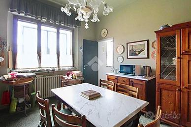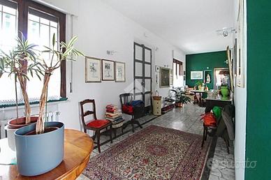 Al piano terra troviamo un appartamento, ristrutturato negli anni '90, composto da un ampio salotto separato dalla sala da pranzo, una cucina abitabile dotata di una piccola dispensa e un bagno di servizio. Nella zona notte troviamo due camere da letto di cui una matrimoniale con cabina armadio e il bagno con box doccia, vasca e finestra. Completano al piano terra la spaziosa sala relax e un ampio locale di sgombero.