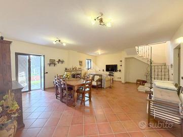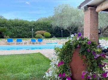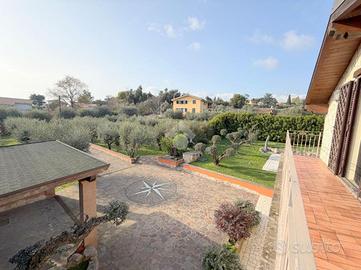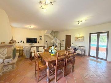 Nel suggestivo contesto dei Castelli Romani, a pochi chilometri dal centro di Velletri, in zona Paganico, sorge questa splendida villa singola di circa 150 mq, una proprietà che coniuga eleganza, comfort e tranquillità in un ambiente riservato ma non isolato. La villa si sviluppa su due livelli e ci accoglie con un grazioso portico, spazio ideale per trascorrere momenti di relax all'aperto o per organizzare pranzi e cene nelle stagioni più miti. Varcata la soglia, si viene accolti da un ampio e luminoso salone impreziosito da un camino classico, elemento che dona calore e carattere all'intera zona living. La cucina a vista, perfettamente integrata nell'ambiente, rende lo spazio conviviale e funzionale. Completa il piano terra un comodo bagno finestrato con grande doccia, rifinito con gusto e praticità. Salendo al primo piano, un disimpegno conduce alla zona notte, composta da due camere da letto luminose e accoglienti. Il secondo bagno, anch'esso con doccia, è pratico e ben rifinito. Sullo stesso livello troviamo un comodo ripostiglio e un bellissimo balcone perimetrale panoramico che regala affacci aperti sul verde circostante. A rendere la proprietà ancora più interessante è la presenza di una dependance per gli ospiti, composta da una camera da letto, una piccola cucina e un bagno, soluzione perfetta per garantire privacy ad amici e familiari o da utilizzare come spazio multifunzionale. La villa è circondata da un magnifico giardino di circa 2.500 mq, curato e ben mantenuto, impreziosito da circa 50 piante di ulivo che donano un'atmosfera autentica e mediterranea. Il vero fiore all'occhiello della proprietà è la splendida piscina, perfettamente inserita nel verde, che diventa il cuore della casa durante la bella stagione e rappresenta un'oasi privata di relax e divertimento. Dal punto di vista delle dotazioni, l'immobile è completo di persiane blindate con grate e zanzariere, condizionatori in tutti gli ambienti, cancello automatico e una comoda cisterna d'acq...