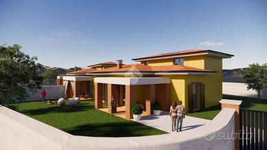 A soli 1 km dal centro di Velletri, in una zona tranquilla e residenziale, proponiamo in vendita una villa bifamiliare di nuova costruzione con Entrata Indipendente e giardino privato di 1.100 mq. L'immobile, in classe energetica A, è progettato per garantire il massimo comfort abitativo e un'elevata efficienza energetica. La villa si sviluppa su due livelli per un totale di circa 120 mq interni, oltre al portico esterno. Al piano terra troviamo la zona giorno, composta da un ampio salone con angolo cottura, ideale per accogliere la famiglia e gli ospiti. Sullo stesso livello si trovano inoltre una camera matrimoniale, una cameretta, un bagno e un ripostiglio, pensati per offrire praticità e comfort nella quotidianità. Salendo al primo piano, si accede alla seconda camera da letto matrimoniale, dotata di una comoda cabina armadio, e a un secondo bagno. Un piano che garantisce privacy e spazi ben distribuiti, perfetti anche come suite padronale. L'immobile è in classe energetica A, costruito con tecniche moderne e materiali di qualità per garantire massima efficienza e risparmio energetico. È previsto un impianto di riscaldamento a gas con termosifoni e un pannello solare per la produzione di acqua calda sanitaria.