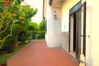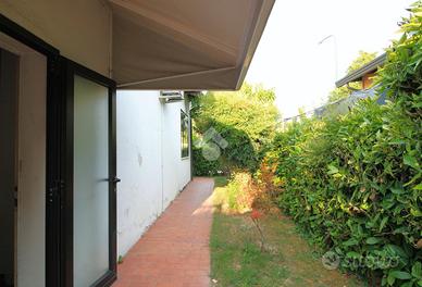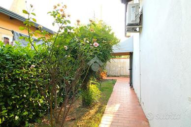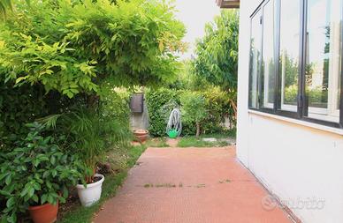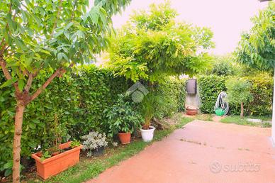 L'abitazione è circondata da un giardino privato di 180 mq ed ha un garage di 22 mq con basculante motorizzato, utile per auto di grandi dimensioni.