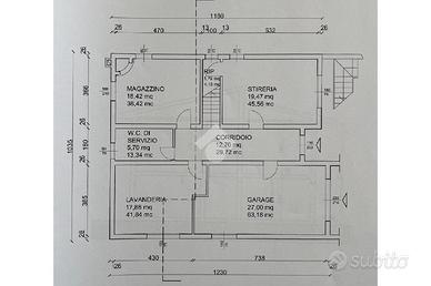 Il piano terra, non abitabile, è accessibile mediante scala interna ma anche direttamente dall'esterno e si sviluppa con ambienti spaziosi e funzionali: un ingresso conduce a una prima stanza adibita a stireria di circa 20 mq, seguita da una grande taverna con un secondo caminetto, perfetta per momenti di convivialità. Completano il piano una lavanderia di circa 18 mq, un bagno finestrato e un ampio garage di 27 mq, accessibile anche internamente, adatto ad ospitare auto di grandi dimensioni e oggetti di uso quotidiano.