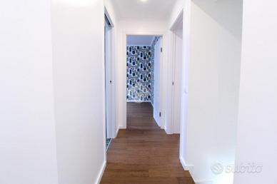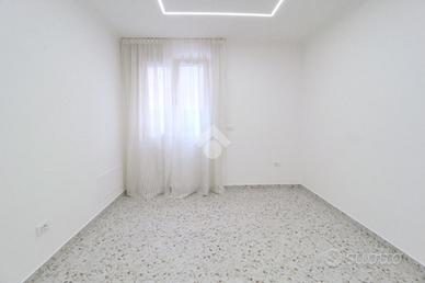 Il piano terra si caratterizza per un'ampia e luminosa zona giorno, resa particolarmente accogliente dalle due grande portefinestre che donano luce naturale agli ambienti e consentono l'accesso diretto allo scoperto privato. La disposizione interna comprende inoltre due stanze spaziose e ben proporzionate, un bagno finestrato completo di vasca e un pratico ripostiglio, perfetto pe