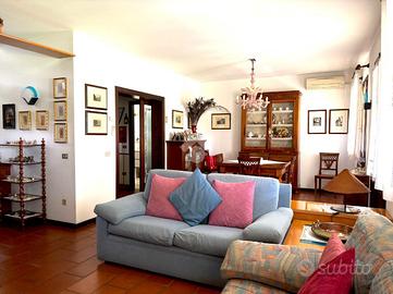 Il vero cuore di questa proprietà, però, è all'esterno: un giardino di circa 2000 mq circonda la casa, offrendo uno spazio verde raro da trovare in città. Qui puoi immaginare cene estive sotto le stelle, giochi all'aperto, angoli di relax sotto il sole o tra gli alberi. Un portico costruito una decina d'anni fa unisce la casa al garage di circa 40 mq, perfetto per auto di qualsiasi dimensione. E nel giardino si trova anche un magazzino recentemente ristrutturato di circa 25 mq, utile per ogni esigenza.