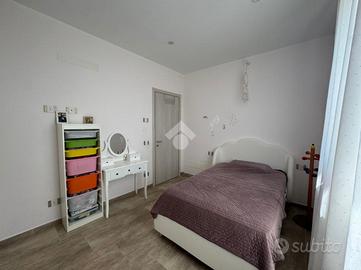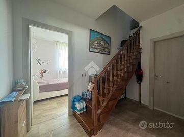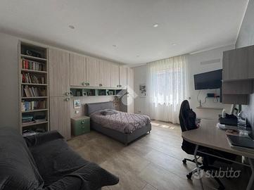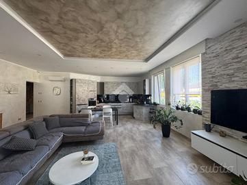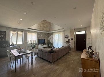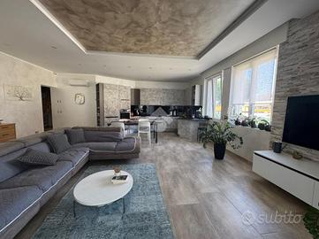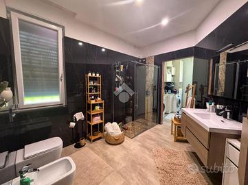L'immobile si presenta con un piano terra completamente ristrutturato con materiali di pregio, dove troviamo un ampio e luminoso soggiorno con cucina a vista in stile open space, ideale per accogliere famiglia e ospiti. La zona notte è composta da una spaziosa camera matrimoniale con cabina armadio e balcone privato, due ulteriori camere da letto matrimoniali molto luminose, un bagno elegante con doccia walk-in e un'ampia lavanderia separata. Questo livello è dotato di riscaldamento a pavimento e impianto di condizionamento autonomo, offrendo così massimo comfort in tutte le stagioni.