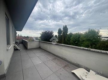 Al primo piano troviamo una luminosa zona giorno con cucina e soggiorno in ambiente unico, una camera matrimoniale, una camera singola, un bagno finestrato con doccia e un terrazzo che si sviluppa su due lati, perfetto per vivere l'esterno.