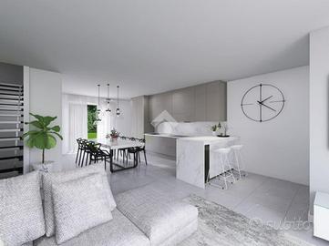 BORGO ROMA - SACRA FAMIGLIA In contesto residenziale non disturbato dal passaggio di traffico veicolare, ma comunque comodo ai servizi che offre il quartiere, Villa Singola di prossima costruzione disposta su due soli livelli con giardino di proprietà. La disposizione degli spazi interni, prevede al piano terra un soggiorno con angolo cottura di oltre 50 mq, con accesso alla grande lavanderia e alla centrale termica/ripostiglio.La scala interna ci fa accedere al piano superiore dove troviamo due camere da letto doppie con porta finestra che ci permette di uscire sul terrazzo di circa 50 mq, una camera matrimoniale con bagno privato, ripostiglio/cabina armadi e porta finestra che accede ad un ulteriore balcone. Sempre al piano è presente un secondo servizio finestrato. Completa' la proprietà un garage doppio al piano terra. L'immobile verrà costruito con le caratteristiche delle Case Clima A4, impianto di riscaldamento a pavimento con pompa di calore, pannelli fotovoltaici 3 Kwh, ventilazione meccanica controllata per la zona giorno (ricambio aria automatico), cappotto da 12 cm, ed infissi in PVC triplo vetro. Predisposizione Aria condizionata e impianto di allarme. Disponibilità di tre soluzioni prezzi a partire da Euro 530.000,00.