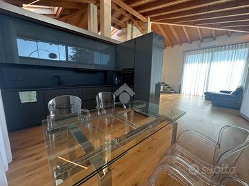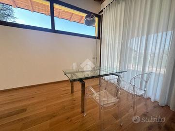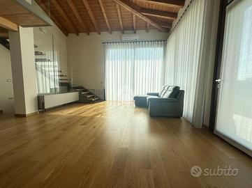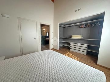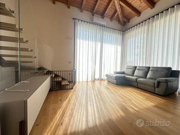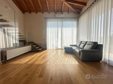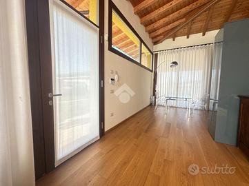 PONTE CRENCANO - VILLA SINGOLA PRESTIGIOSA NUOVA COSTRUZIONE CON 1000 MQ DI GIARDINO E TERRAZZO, IMMERSA NEL VERDE E CLASSE ENERGETICA A4 - AUTORIMESSA DI MQ.108 A ridosso delle suggestive colline di Quinzano, in contesto riservato e immerso nel verde, proponiamo in locazione esclusiva villetta singola di prestigio, libera su quattro lati, edificata nel 2025 e realizzata secondo i più elevati standard costruttivi ed energetici (Classe A4). La proprietà si distingue per l'eccellente qualità edilizia, caratterizzata da cappotto termico e soluzioni tecnologiche orientate al massimo efficientamento energetico, garantendo comfort abitativo e ridotti consumi. L'immobile si sviluppa su una superficie commerciale di 172 mq, distribuita su due livelli fuori terra, con eleganti travature a vista in legno che conferiscono calore e raffinatezza agli ambienti. Internamente l'immobile è così suddiviso: ampio e luminoso salone, valorizzato da grandi vetrate scorrevoli che creano continuità tra interno ed esterno, cucina abitabile separata, camera matrimoniale padronale con bagno finestrato en suite (box doccia) e spaziosa cabina armadio, seconda camera matrimoniale, servizio finestrato padronale con vasca idromassaggio, ripostiglio e vano lavanderia. Il piano primo soppalcato, con affacci interni e illuminato da lucernari Velux, ospita un elegante open space ideale come terza camera, studio o area relax/accessoria. All'esterno, la villa è circondata da circa 1.000 mq di giardino privato che garantisce massima privacy e vivibilità, arricchito da un ampio portico utilizzabile come terrazza coperta, perfetto per momenti conviviali con una piacevole vista sul verde e sulle colline circostanti. Al piano interrato si sviluppa una spaziosa autorimessa di mq.108, con capacità per più autovetture, oltre ad ampie zone di servizio e disbrigo. L'immobile è stato progettato per fornire dotazioni e comfort come riscaldamento autonomo a pavimento, impianto di allarme perimetrale e infine