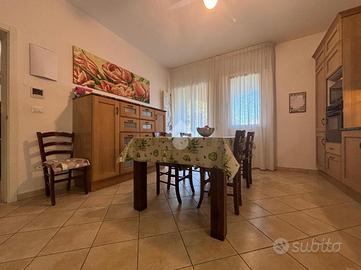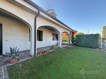 VESCOVANA: in località Santa Maria D'Adige, proponiamo in vendita villa singola di circa 228 mq, caraterrizata da ambienti ampi, luminosi e ottimamente distribuiti su un unico livello. Dal portico si accede all'ingresso dell'abitazione e si viene subito accolti nell'ampio soggiorno con camino funzionante. Alla sinistra del soggiorno si sviluppa la cucina abitabile, spaziosa e funzionale, arricchita da una porta finestra che conduce al portico esterno ideale per pranzare o cenare in compagnia. Dal soggiorno qualche gradino conduce alla zona notte dove troviamo un ampia e luminosa camera da letto matrimoniale con bagno privato finestrato dotato di doccia e due camere da letto doppie. Adiacente ad una delle stanze c'è il secondo bagno finestrato completo di doccia. La zona giorno è divisa dalla zona notte da una pratica porta a scomparsa. Dal corridoio si accede direttamente al garage doppio di circa 40mq, alla pratica lavanderia e tramite la scala interna, all'ampia mansarda, un ambiente versatile da personalizzare in base alle proprie esigenze di circa 160m. La proprietà è completata da impianto di climatizzazione e sistema di allarme, elementi che uniscono comfort moderno e sicurezza. Questa soluzione è ideale per chi cerca indipendenza, spazi genorosi e un contesto sereno nella tranquillità