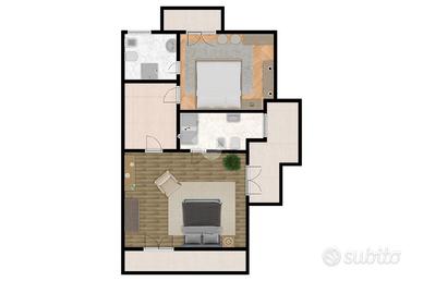 Il piano terra ospita l'intera zona giorno, illuminata da indiscussa luce naturale grazie alle finestre e portefinestre che conducono al giardino che circonda l'intero immobile. Tramite antibagno abbiamo il servizio del piano, finestrato, con sanitari in ceramica e doccia. L'intero piano e la scala che accede al primo piano sono fatti in marmo.