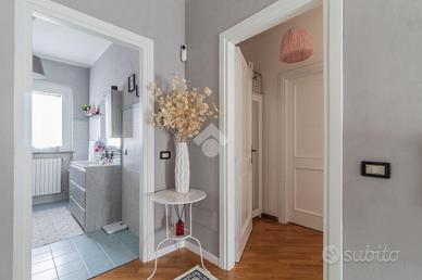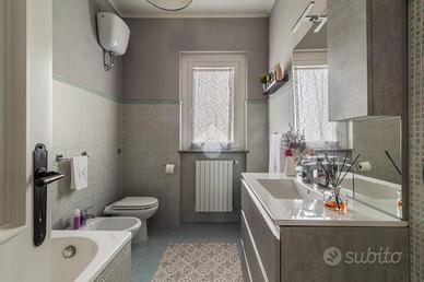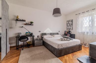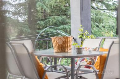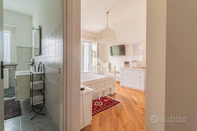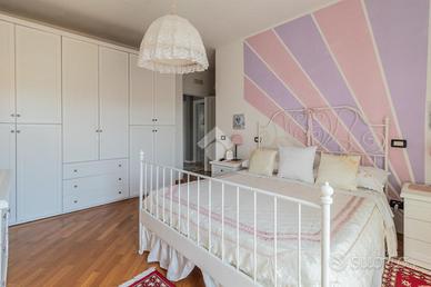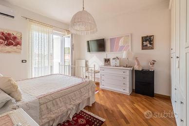 La zona notte, situata al primo piano, offre due camere da letto, un bagno completo con doccia e una camera matrimoniale provvista di balcone privato e bagno en-suite, garantendo privacy e comfort per tutta la famiglia.