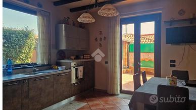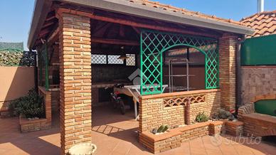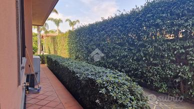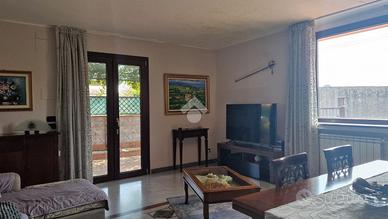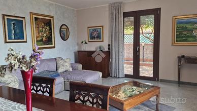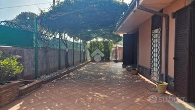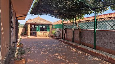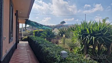 Al confine tra Viagrande ed Aci Sant'Antonio, su strada secondaria accessibile da via Giuseppe Ungaretti, strada di collegamento tra Aci Sant'Antonio, Viagrande e le frazioni santantonesi di Lavinaio e Santa Maria La Stella, nonché alla vicina via Tropea che dista 3 km dal casello autostradale di Acireale rendendo la zona ben collegata. Il contesto è un'area di ville e case singole realizzate tra gli anni '80 e '90, nonché terreni liberi. La villa: con accesso pedonale e carrabile da via Sicilia, su corte pavimentata che abbraccia la zona giorno di casa ed una tettoia aperta con struttura in legno, adibita a zona bbq e cucina esterna. Area carrabile realizzata in auto bloccanti ed un giardino curato con alberi ad alto fusto e piante ornamentali per una metratura di 1032 mq circa a completare gli spazi esterni al piano terra. Accesso di casa su cucina comoda. Disimpegno, bagno, uno studio ed il soggiorno al piano terra. Dal disimpegno, tramite scala interna si accede al primo piano mansardato con tetti con h minima m 2,20 ed h massima m 3,44, in cui è stata realizzata la zona notte con due camere da letto, bagno e disimpegno con uscita sul terrazzo di mq 80 a servizio del piano con vista libera sull'Etna tra la parte terrazzata e la parte balconata che attornia la villa. Da ripristinare il terrazzo al piano primo. Ottime le condizioni dei prospetti esterni. Rifatto l'impianto idrico al piano terra, impianto elettrico originario dell'epoca di costruzione, infissi in alluminio effetto legno a taglio termico, riscaldamento autonomo e con due climatizzatori, camino, cancelletti anti intrusione, due cisterne, impianto fotovoltaico da 9kwh, impianto d'irrigazione esterno. Per ulteriori informazioni contattaci o vieni a trovarci via Lavina 347, Aci Sant'Antonio. Ti Aspettiamo!